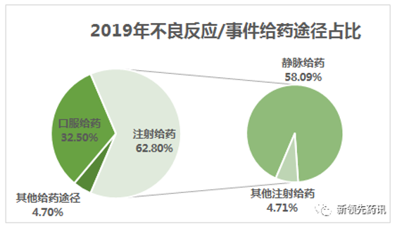 由于歷史因素,國產(chǎn)注射劑的安全性和有效性與原研制劑之間仍存在差異。根據(jù)《國家藥品不良反應(yīng)監(jiān)測年度報(bào)告(2019)》統(tǒng)計(jì)顯示,在2019年不良反應(yīng)/事件報(bào)告中,注射劑占62.8%(其中靜脈給藥58.09%,其他注射給藥4.71%),口服給藥占32.5%,其他給藥途徑占4.7%。