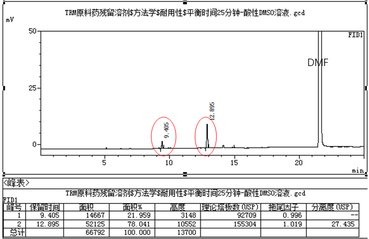 ? 更換DMF作溶劑可改善此現(xiàn)象;但是有的鹽酸類原料藥在DMF中的溶解性不滿足測定要求時,可采用一定比例的DMF:水的混合溶液做溶劑。