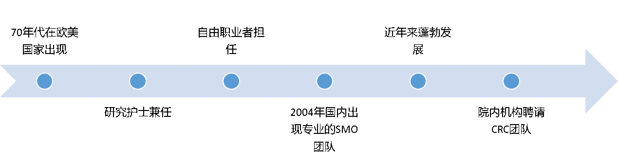我國自2003年9月1日《藥物臨床試驗質(zhì)量管理規(guī)范》實施以來,對臨床試驗中的各個方面都提出了具體的要求,包括倫理、研究人員職責(zé)和效率等。在藥物臨床試驗日趨規(guī)范的背景下,CRC職業(yè)應(yīng)運而生,它解決了研究者因醫(yī)務(wù)工作繁忙,無法及時完成藥物臨床試驗中很多繁瑣的事務(wù)性工作問題。CRC最初由護士兼任,后來發(fā)展到自由職業(yè)者擔(dān)任,直至2004年國內(nèi)終于出現(xiàn)了專業(yè)的SMO團隊。