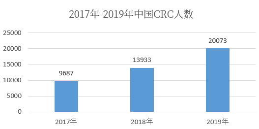 近年來,隨著國內(nèi)臨床試驗機構(gòu)數(shù)量的不斷增加,醫(yī)藥外包行業(yè)更是迎來了蓬勃發(fā)展期,CRC從業(yè)者由2017年的9687人增長到2019年的20073人,醫(yī)院機構(gòu)也開始建立自己的CRC團隊。