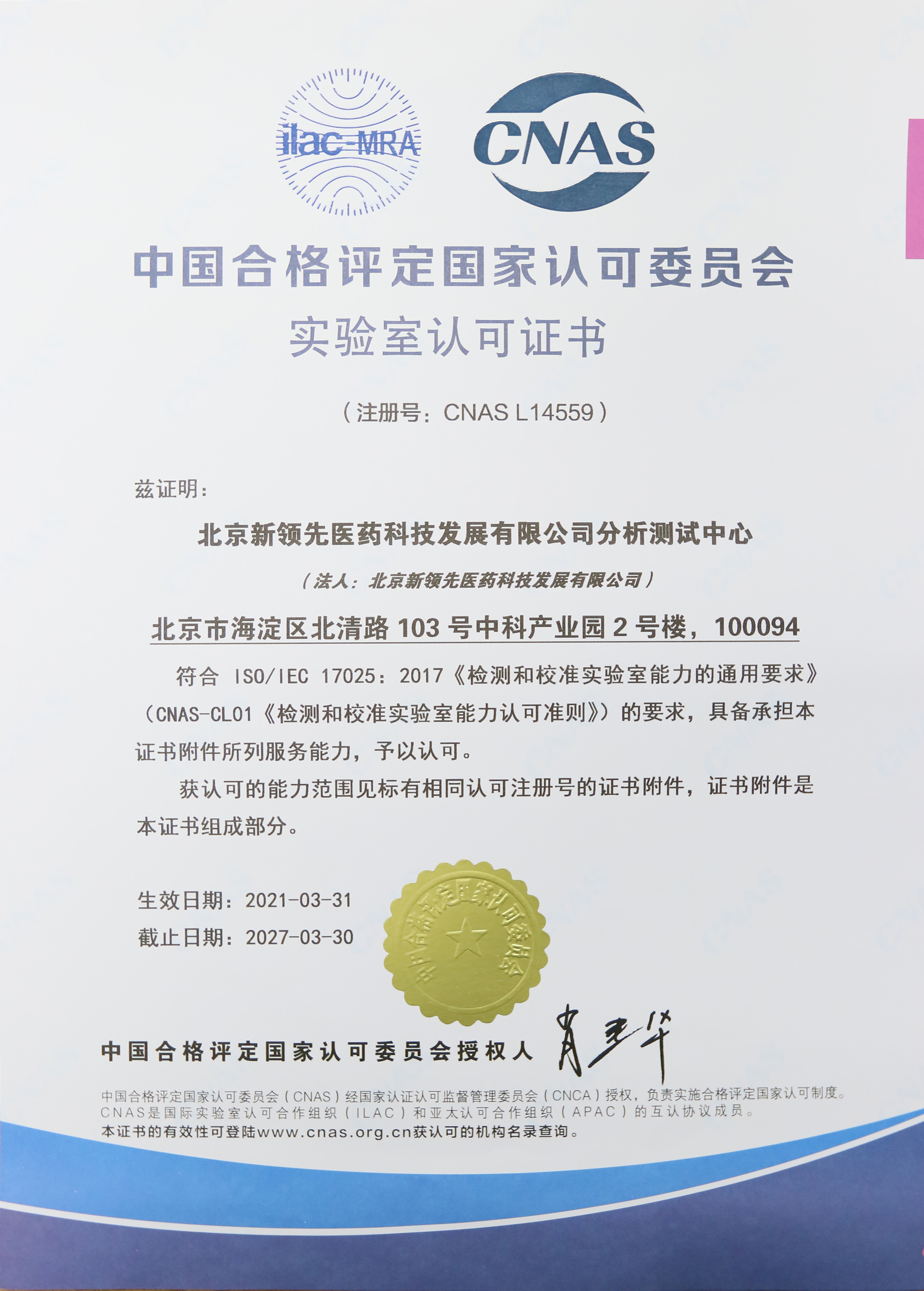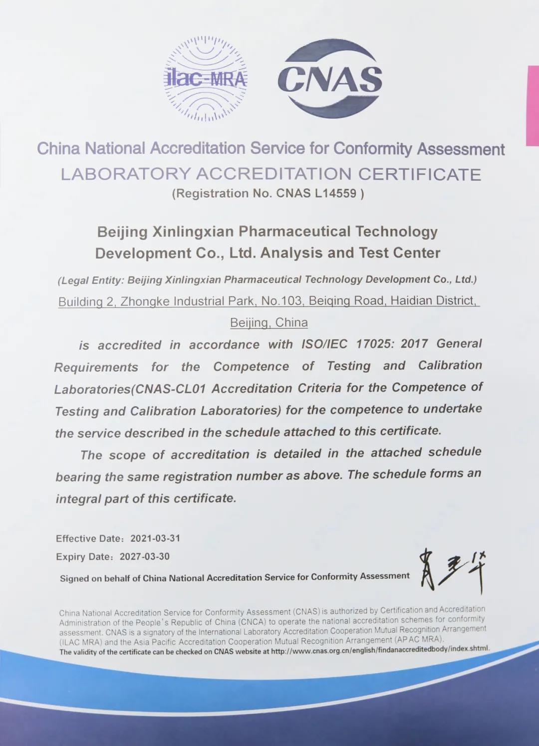 喜訊 || 熱烈祝賀新領(lǐng)先醫(yī)藥分析測試中心通過CNAS認證!