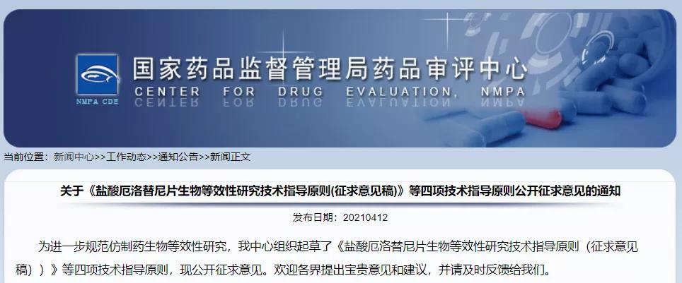 關(guān)于《鹽酸樂卡地平片生物等效性研究指導(dǎo)原則(征求意見稿)》等四項(xiàng)技術(shù)指導(dǎo)原則公開征求意見的通知