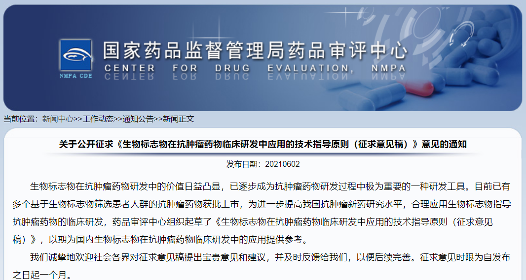 關(guān)于公開征求《生物標(biāo)志物在抗腫瘤藥物臨床研發(fā)中應(yīng)用的技術(shù)指導(dǎo)原則(征求意見稿)》意見的通知