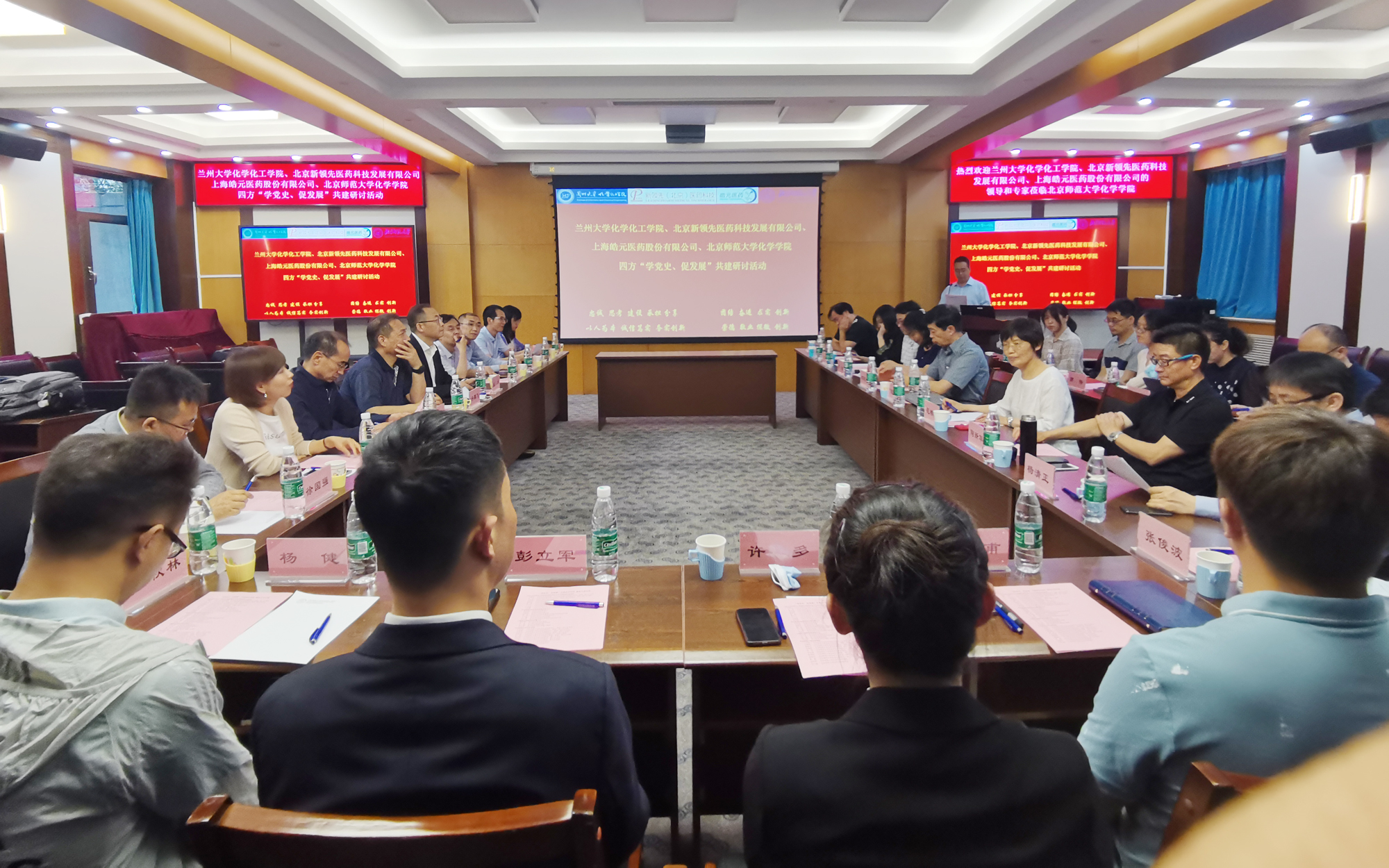 北京師范大學(xué)化學(xué)學(xué)院黨委書記盧忠林教授、院長范樓珍教授,蘭州大學(xué)校長助理和科學(xué)技術(shù)發(fā)展研究院執(zhí)行院長許鵬飛教授、化學(xué)化工學(xué)院院長梁永民教授、功能有機(jī)分子化學(xué)國家重點(diǎn)實(shí)驗室主任王為教授,北京新領(lǐng)先醫(yī)藥董事長陶新華先生、副總裁董穎博士,上海皓元醫(yī)藥首席運(yùn)營官彭立軍博士等眾多專家領(lǐng)導(dǎo)出席了此次黨建活動。