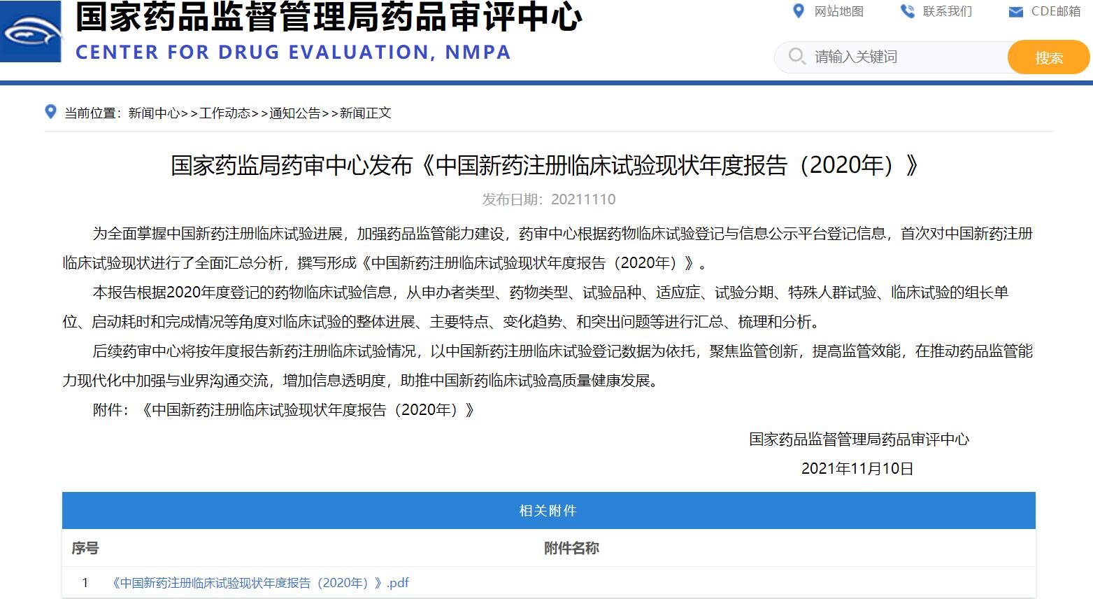 國(guó)家藥監(jiān)局藥審中心發(fā)布《中國(guó)新藥注冊(cè)臨床試驗(yàn)現(xiàn)狀年度報(bào)告(2020年)》