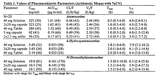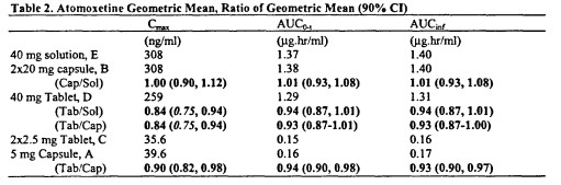 筆者認(rèn)為FDA綜述對(duì)于臨床研究公布的更為詳細(xì),報(bào)告中會(huì)匯總原研開發(fā)過(guò)程中所進(jìn)行的各種臨床試驗(yàn),包括不同劑型的藥動(dòng)學(xué)研究;處方變化的生物等效性研究;食物對(duì)于藥物吸收的影響;不同人群吸收的影響等,下面以托莫西汀膠囊為例,解讀相關(guān)文獻(xiàn)。