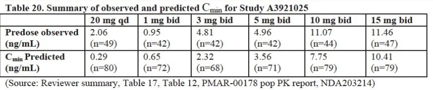 ·多劑量研究中(連續(xù)服用5天),托法替布緩釋片11mg(qd)與托法替布片5mg(bid),開展BE試驗(yàn)。