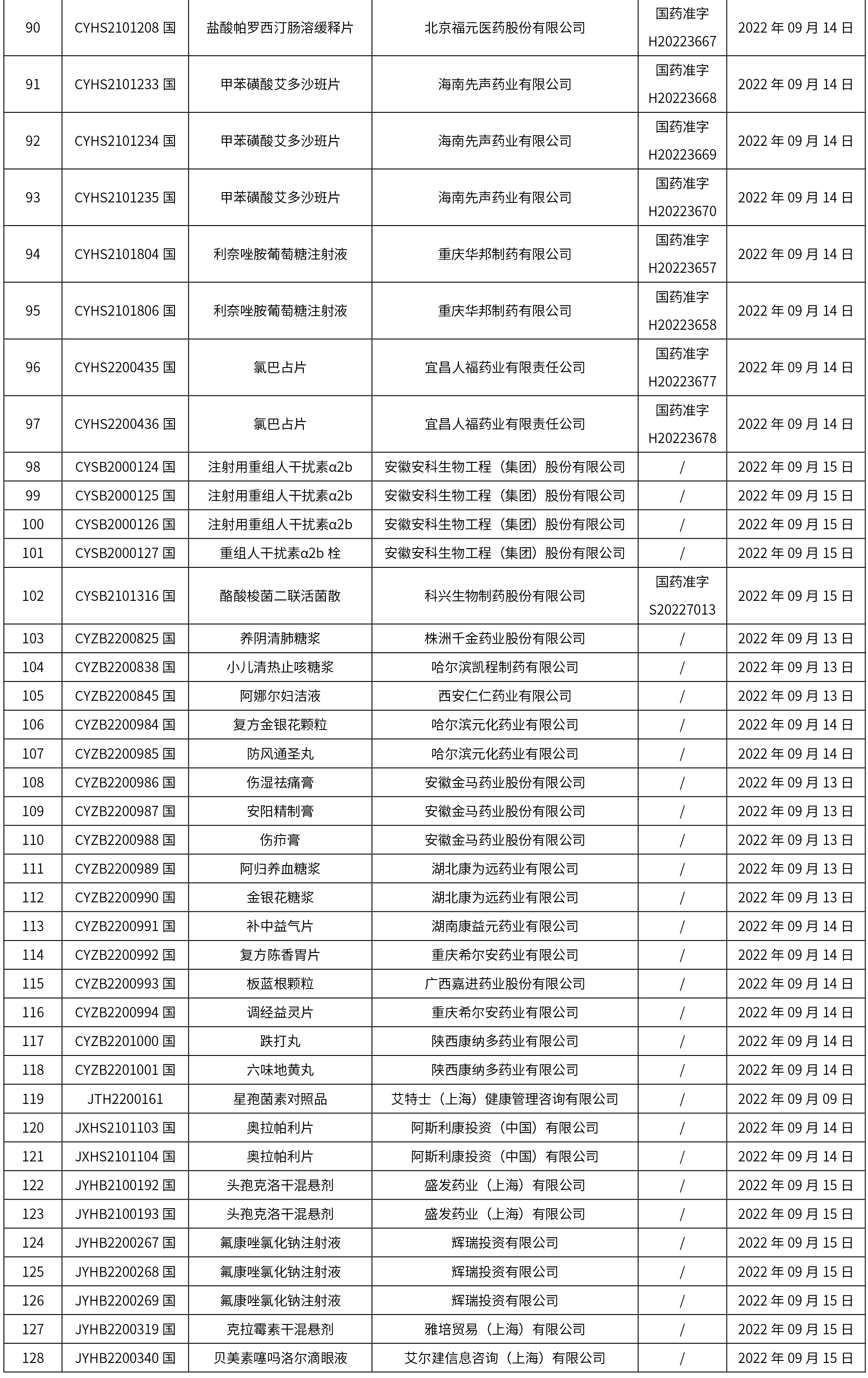 1. 本周(截止到9月23日12:00)共發(fā)布了128個(gè)品規(guī)的藥品批準(zhǔn)證明文件待領(lǐng)取信息,其中一致性評(píng)價(jià)15個(gè),注射劑30個(gè)。