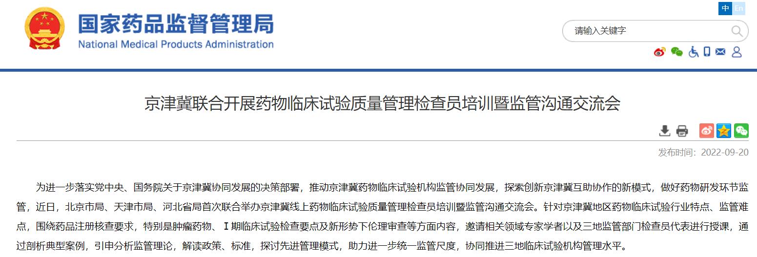 京津冀聯(lián)合開(kāi)展藥物臨床試驗(yàn)質(zhì)量管理檢查員培訓(xùn)暨監(jiān)管溝通交流會(huì)