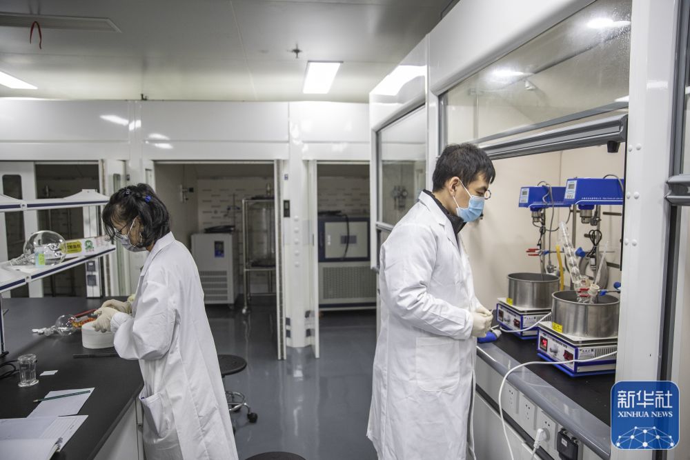 12月16日,在重慶市永川區(qū)新領(lǐng)先(重慶)生物醫(yī)藥一體化研發(fā)服務(wù)基地,新領(lǐng)先重慶研究院的研發(fā)人員在合成工藝實(shí)驗(yàn)室觀察合成反應(yīng)的現(xiàn)象變化。