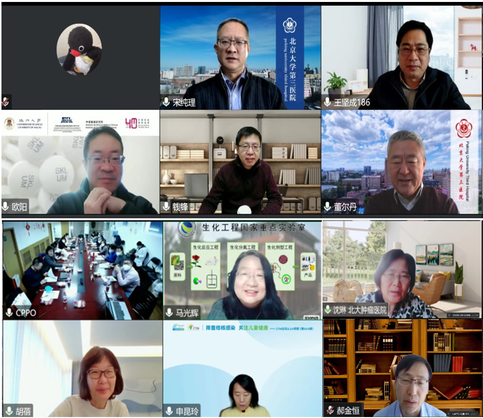 中國工程院院士、北京大學(xué)心血管研究所所長、分子心血管學(xué)教育部重點(diǎn)實(shí)驗(yàn)室主任董爾丹院士,中國科學(xué)院院士、中科院過程工程研究所研究員、生化工程國家重點(diǎn)實(shí)驗(yàn)室主任、國家生化工程技術(shù)研究中心(北京)主任、聯(lián)合研發(fā)中心學(xué)術(shù)委員會(huì)主任委員馬光輝院士;北京大學(xué)醫(yī)學(xué)部科研處處長王堅(jiān)成教授、北京大學(xué)第三醫(yī)院副院長宋純理教授、科研處處長閆麗盈研究員、李海燕副處長、新領(lǐng)先醫(yī)藥董事長陶新華先生、總裁高世靜女士、副總裁康建磊先生以及聯(lián)合研發(fā)中心學(xué)術(shù)委員會(huì)委員、北醫(yī)三院兒科主任韓彤妍教授、腫瘤化療與放射病科主任曹寶山主任等40余位專家,通過線上線下的方式參加了此次會(huì)議。會(huì)議由北京大學(xué)第三醫(yī)院藥物臨床試驗(yàn)機(jī)構(gòu)李海燕主任和藥物臨床試驗(yàn)機(jī)構(gòu)劉東陽副主任共同主持。