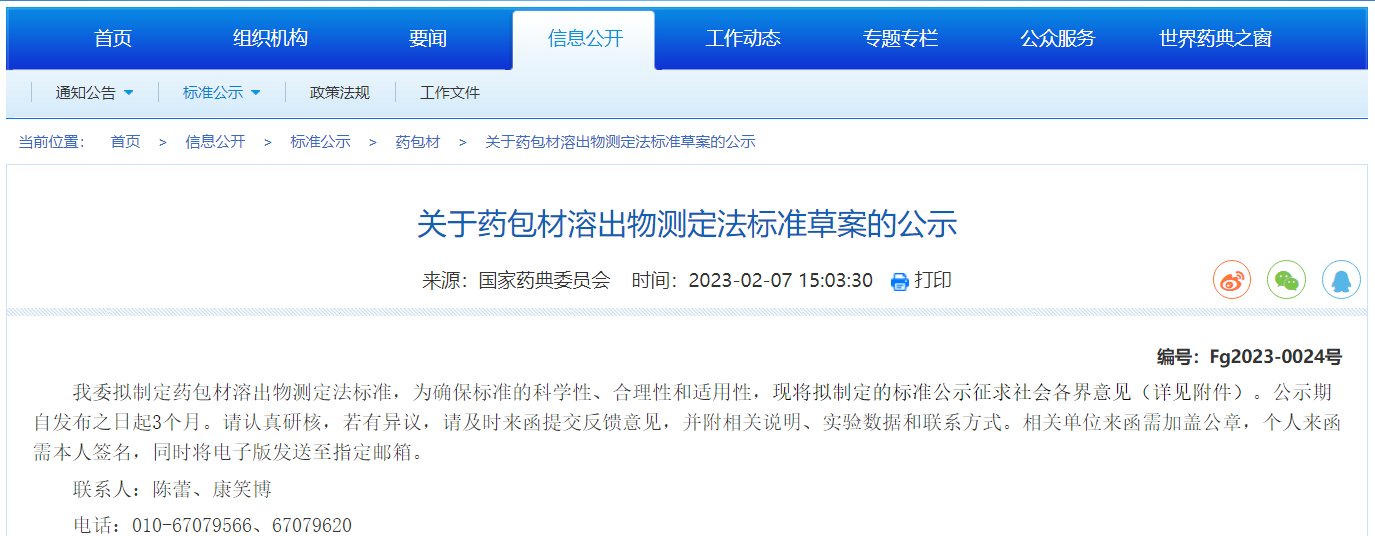 關(guān)于藥包材溶出物測定法標(biāo)準(zhǔn)草案的公示
