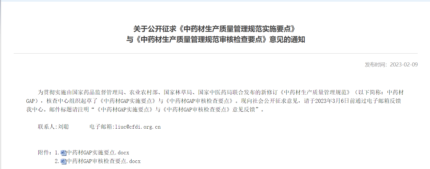 關(guān)于公開征求《中藥材生產(chǎn)質(zhì)量管理規(guī)范實施要點》與《中藥材生產(chǎn)質(zhì)量管理規(guī)范審核檢查要點》意見的通知