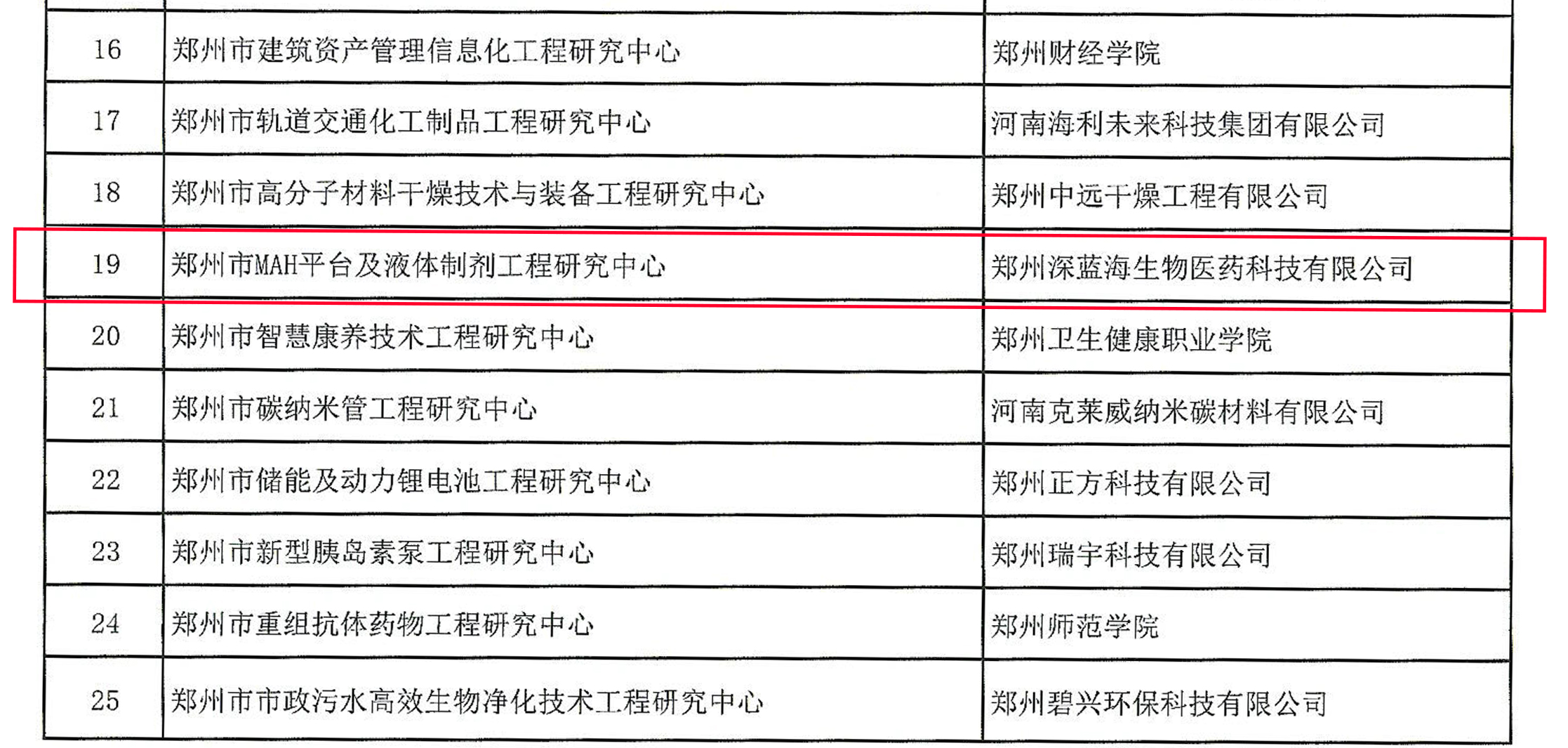 喜報(bào) | 新領(lǐng)先·深藍(lán)海(鄭州)獲批鄭州市MAH平臺及液體制劑工程研究中心