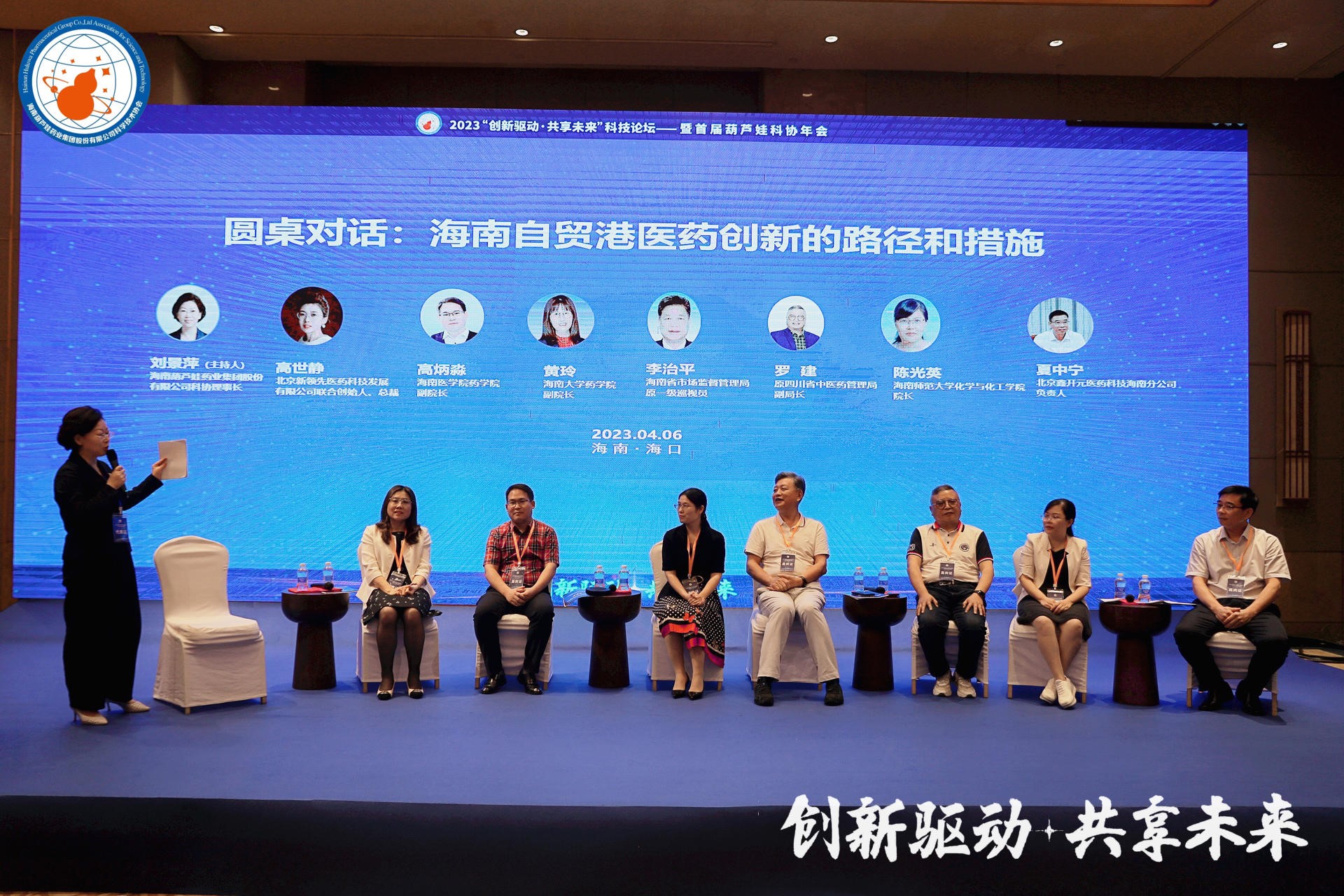 四川省中醫(yī)藥管理局原副局長羅建先生,海南省市場監(jiān)督管理局原一級巡視員李治平先生,海南大學(xué)藥學(xué)院副院長黃玲女士,海南醫(yī)學(xué)院藥學(xué)院副院長高炳淼女士,海南師范大學(xué)化學(xué)與化工學(xué)院院長陳光英女士,北京鑫開元醫(yī)藥科技有限公司海南分公司負(fù)責(zé)人夏中寧先生,北京新領(lǐng)先醫(yī)藥科技發(fā)展有限公司總裁、杭州康領(lǐng)先醫(yī)藥科技有限公司總經(jīng)理高世靜女士等,在主題為“海南自貿(mào)港醫(yī)藥創(chuàng)新的路徑和措施”的圓桌論壇中積極獻策。葫蘆娃藥業(yè)集團董事長、葫蘆娃藥業(yè)科協(xié)主席劉景萍女士主持論壇。