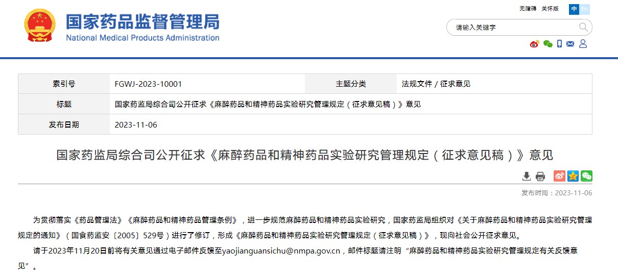 政策法規(guī) || 《麻醉藥品和精神藥品實驗研究管理規(guī)定(征求意見稿)》(附法規(guī)概覽11.06-11.10)