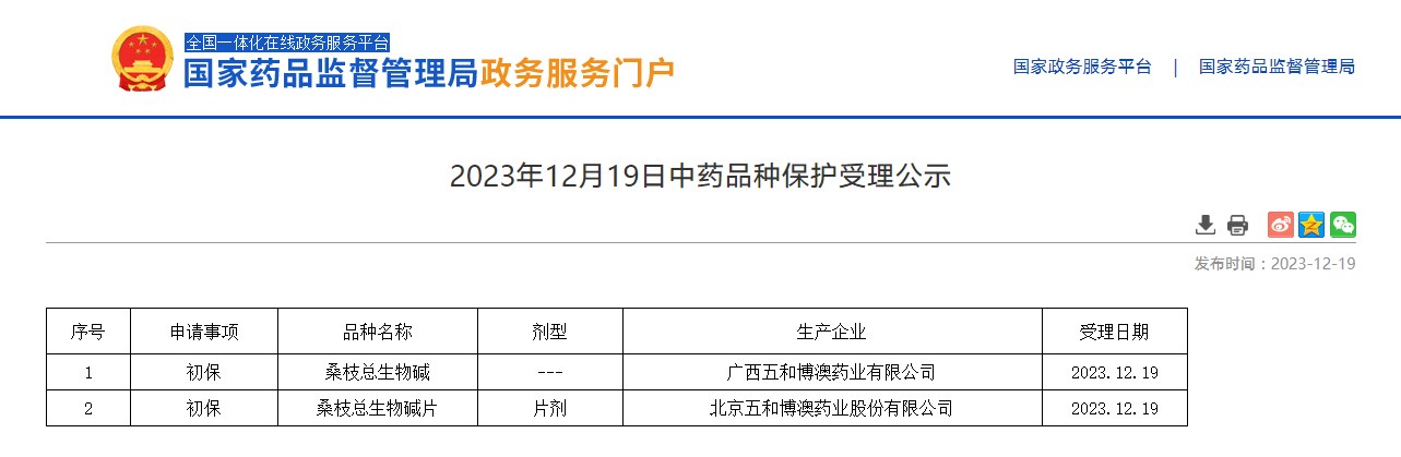 2023年12月19日中藥品種保護(hù)受理公示