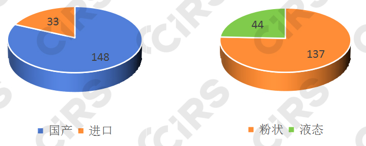 截至2024年4月1日,共計(jì)181款特醫(yī)食品注冊(cè)獲批,國(guó)產(chǎn)148款,進(jìn)口33款,國(guó)產(chǎn)產(chǎn)品注冊(cè)數(shù)量已遠(yuǎn)超進(jìn)口產(chǎn)品。在已批準(zhǔn)的181款產(chǎn)品中,粉狀產(chǎn)品居多,有137款產(chǎn)品的劑型為粉狀,其余44款為液態(tài)產(chǎn)品。