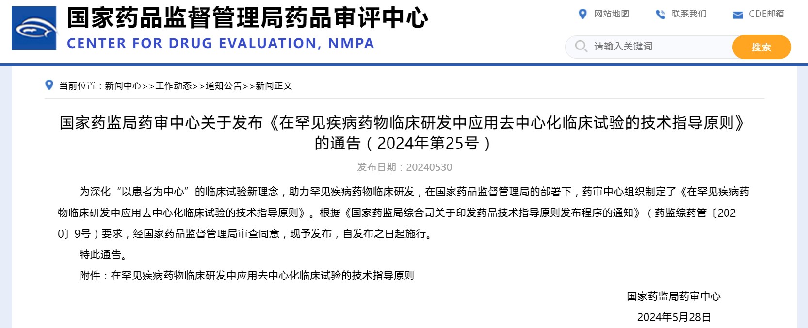 國家藥監(jiān)局藥審中心關(guān)于發(fā)布《在罕見疾病藥物臨床研發(fā)中應(yīng)用去中心化臨床試驗的技術(shù)指導(dǎo)原則》的通告(2024年第25號)