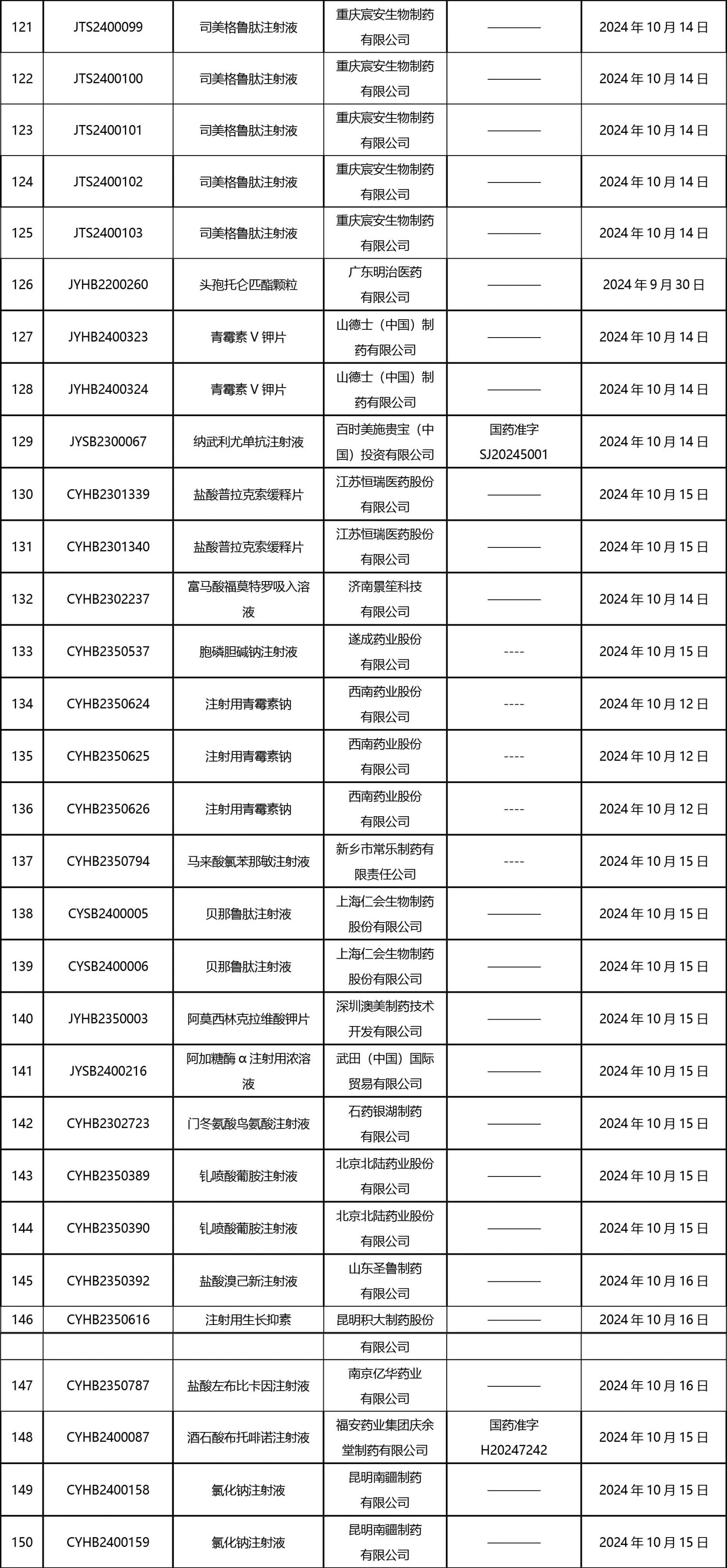 截止2024年10月18日 15:00本周發(fā)布161個待領取藥品批準證明文件,其中注射液84個,一致性評價品種30個。