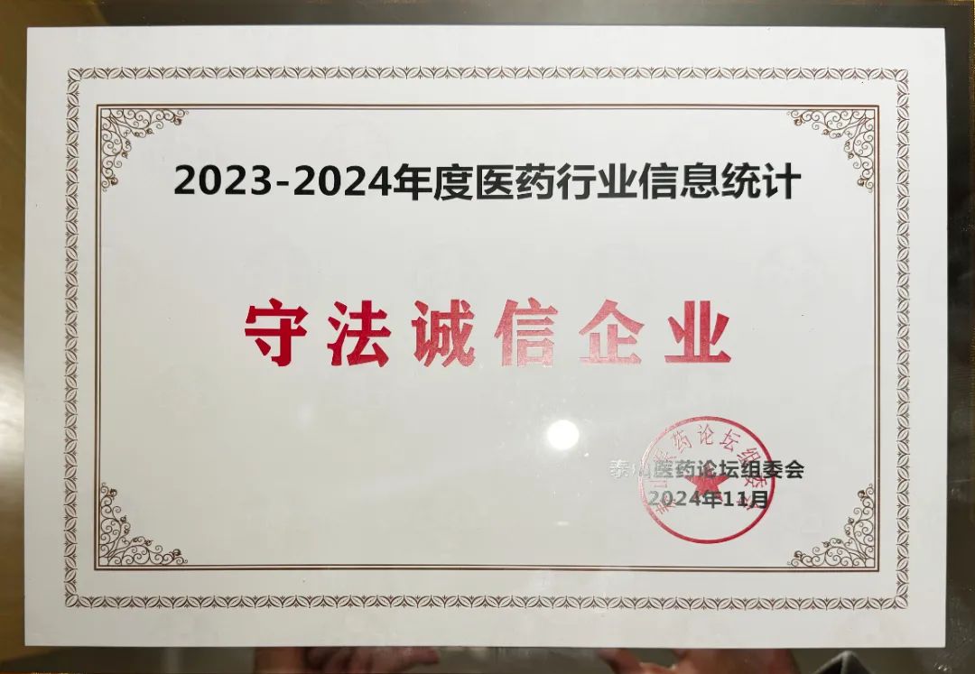 喜報(bào) | 新領(lǐng)先醫(yī)藥榮獲2023-2024年度醫(yī)藥行業(yè)“研發(fā)公司前五十家”、“守法誠(chéng)信企業(yè)”等榮譽(yù)!