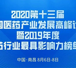 2020年8月6日-8日,由中華全國工商業(yè)聯(lián)合會醫(yī)藥業(yè)商會、贛江新區(qū)管委會主辦,中國(南昌)中醫(yī)藥科創(chuàng)城管委會承辦的“2020第十三屆中國醫(yī)藥產(chǎn)業(yè)發(fā)展高峰論壇暨2019年度中國醫(yī)藥行業(yè)最具影響力榜單發(fā)布會”,將在南昌香格里拉大酒店召開。蒞臨會議的領(lǐng)導(dǎo)和嘉賓圍繞著宏觀經(jīng)濟(jì)形勢、醫(yī)藥產(chǎn)業(yè)發(fā)展現(xiàn)狀、新冠疫情影響等方面開展全方位的分析與研討,論壇現(xiàn)場還邀請了多位醫(yī)藥行業(yè)各領(lǐng)域領(lǐng)軍人物進(jìn)行對話,問道產(chǎn)業(yè)趨勢。 -