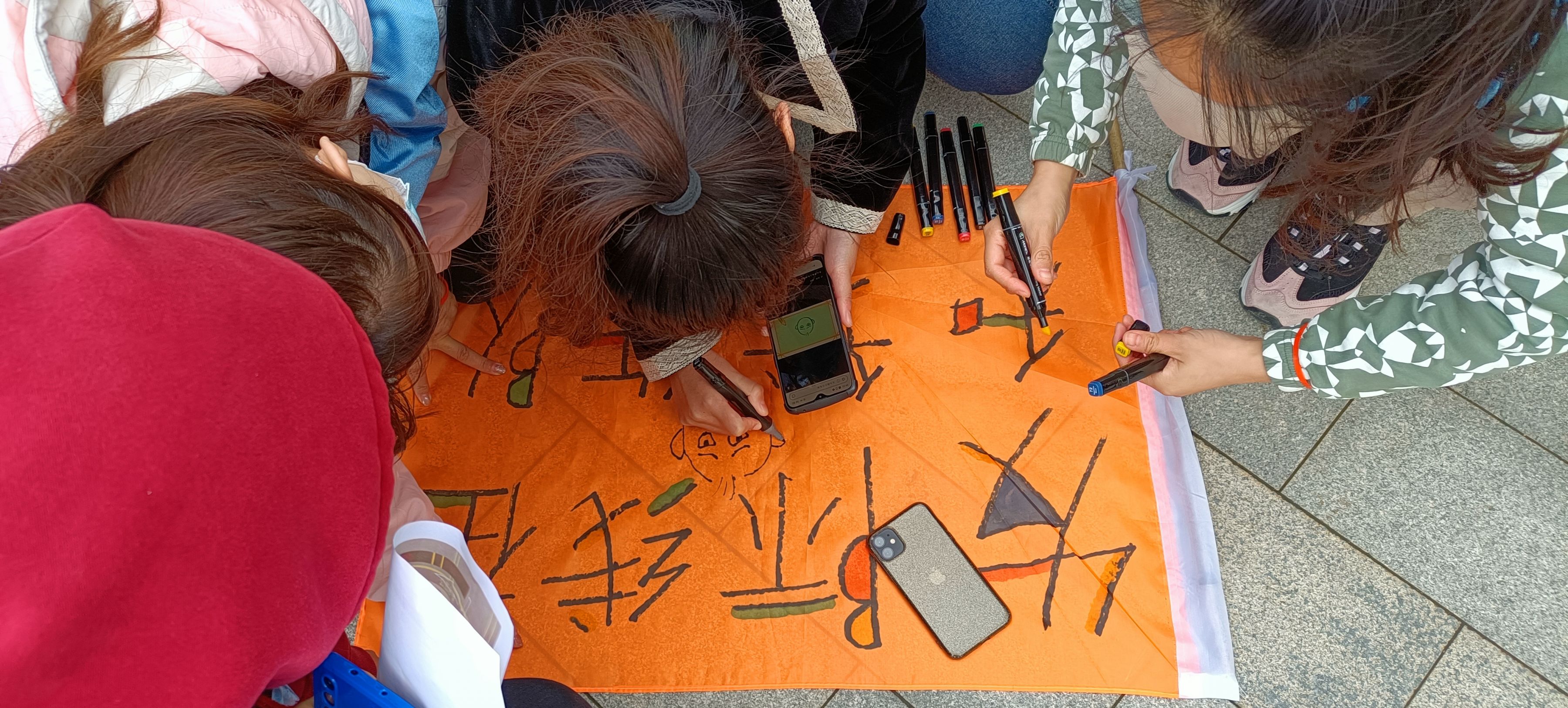 ▲ All team members give full play to their imagination, design team flags.